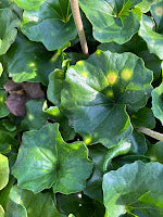Farfugium japonicum 'Aureomaculatum' is an evergreen, herbaceous perennial with large green leaves randomly spotted with yellow dots and has tall spikes of gold flowers in late summer/fall. Farfugium japonicum 'Aureomaculatum' makes a stunnng clump of large, evergreen leaves with yellow dots in areas that are partly shaded and have moist, well draining soil that never dried out. Farfugium japonicum 'Aureomaculatum' makes a stunning specimen and is even better in mass plantings. In late summer/early fall the plants will send up tall flowering spikes with bright golden daisy like flowers.