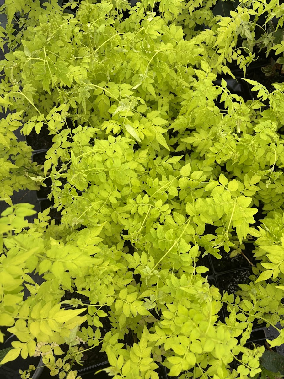 Jasminum mesnyi 'Gold Tip' (primrose jasmine, Japanese jasmine) has greenish yellow to yellow evergreen (semi evergreen) leaves with brilliant yellow flowers in the spring. Jasminum mesnyi 'Gold Tip' is a fast growing, semi climbing, shrub that is great as a tall growing ground cover and excellent for erosion control (it roots where branches touch the ground). Jasminum mesnyi 'Gold Tip' has variegated bright yellow foliage if grown in full sun and masses of fragrant, brilliant yellow, flowers in early spring. Jasminum mesnyi 'Gold Tip' tolerates a wide range of conditions but is best in average soil that is not overly dry. Jasminum mesnyi 'Gold Tip' will make a stunning, bold statement in areas that you need bright color and large, spreading plants.